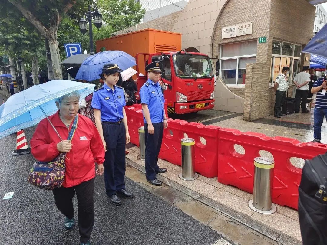 这边龙舟赛刚刚鸣枪出发,宜川路街道综合行政执法队机动组组长钱丹枫就带领另外一组队员前往位于泾惠路123号的洛川学校,开展中考护校、护考工作,进一步维护好校园周边秩序,缓解交通通行压力,并积极提供交通咨询等服务。