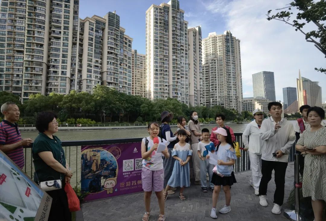 红色的摇篮,童心在筑梦。娃娃们在家长的带领下,沿岸打卡苏河“十景”,学习人文故事,开展“修身+”家庭家教家风建设系列活动,通过“一江一河”人文行走活动普及立德树人家庭教育理念和知识。以苏河修身15分钟打卡活动为媒,在走读宣讲中,培育青少年群体核心价值观素养。