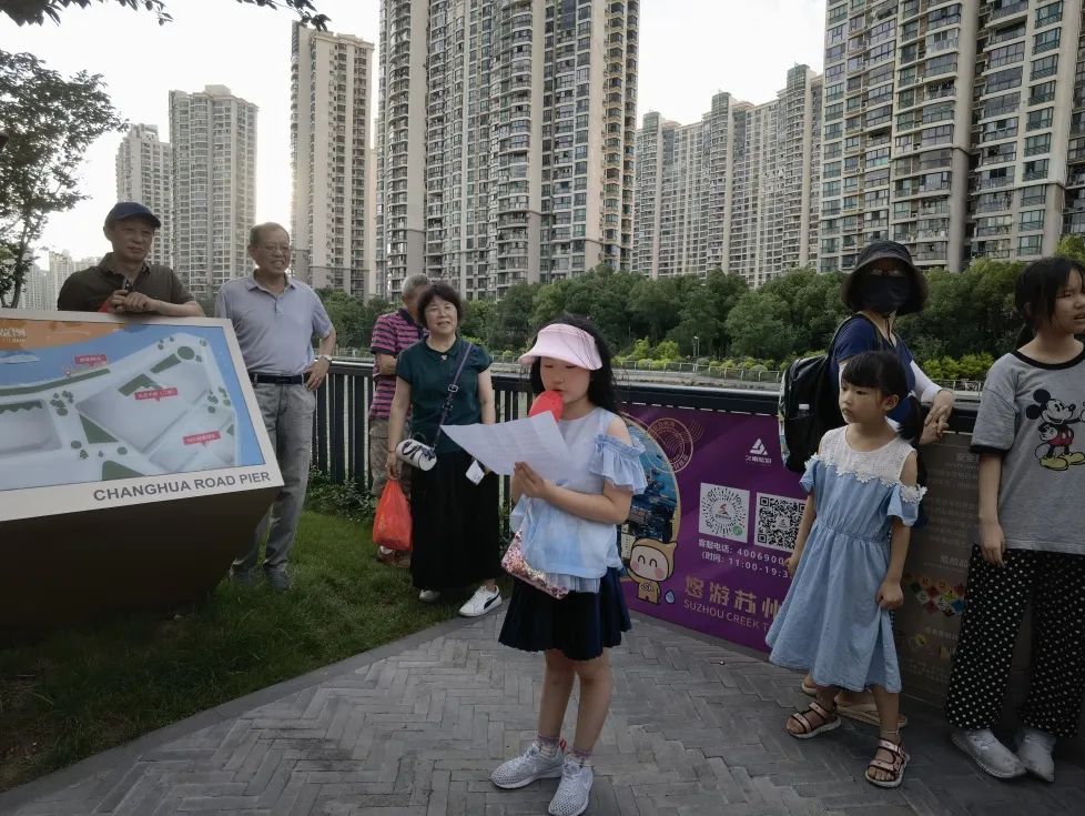 稚嫩的笑脸,认真的话语。小小宣讲员们“自由发声”,用最真挚、最朴实的言语诉说着两湾城的前世今生,从20年前的“两湾一宅”(潭子湾、潘家湾、王家宅),到旧城改造,再到绿树林立的中远两湾城,最后成就了此刻“水清、天蓝、水绿”的苏河两湾文明实践步道,时光荏苒、岁月如梭,1690米的魅力岸线,在孩子们的话中描绘,在孩子们的眼中定格。