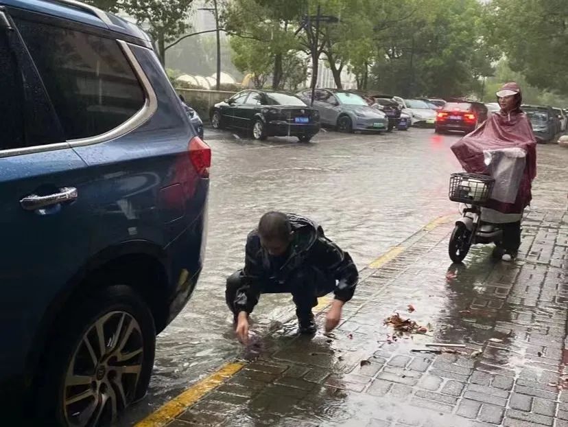 各居民区物业公司,也积极组织工作人员参与小区路面积水排出、下水道清理以及防止雨水漫进地下车库等工作,全面保障居民区群众的安全。
