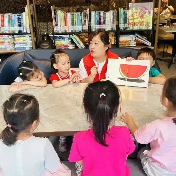 孩子们来到必胜客的“悦读食光”空间,爱在身边的志愿者老师为孩子们带来了亲子绘本故事—走进《蚂蚁和西瓜》。