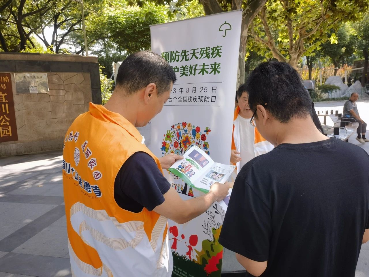 在宜川公园广场上,街道残联工作人员向过往的居民群众发放预防残疾宣传单,着力宣传“残疾预防,人人有责”的理念,认真讲解残疾预防知识,让社区居民进一步了解诞生缺陷防控、疾病防控、意外损害预防、工伤和职业病预防、残疾康复等核心知识。