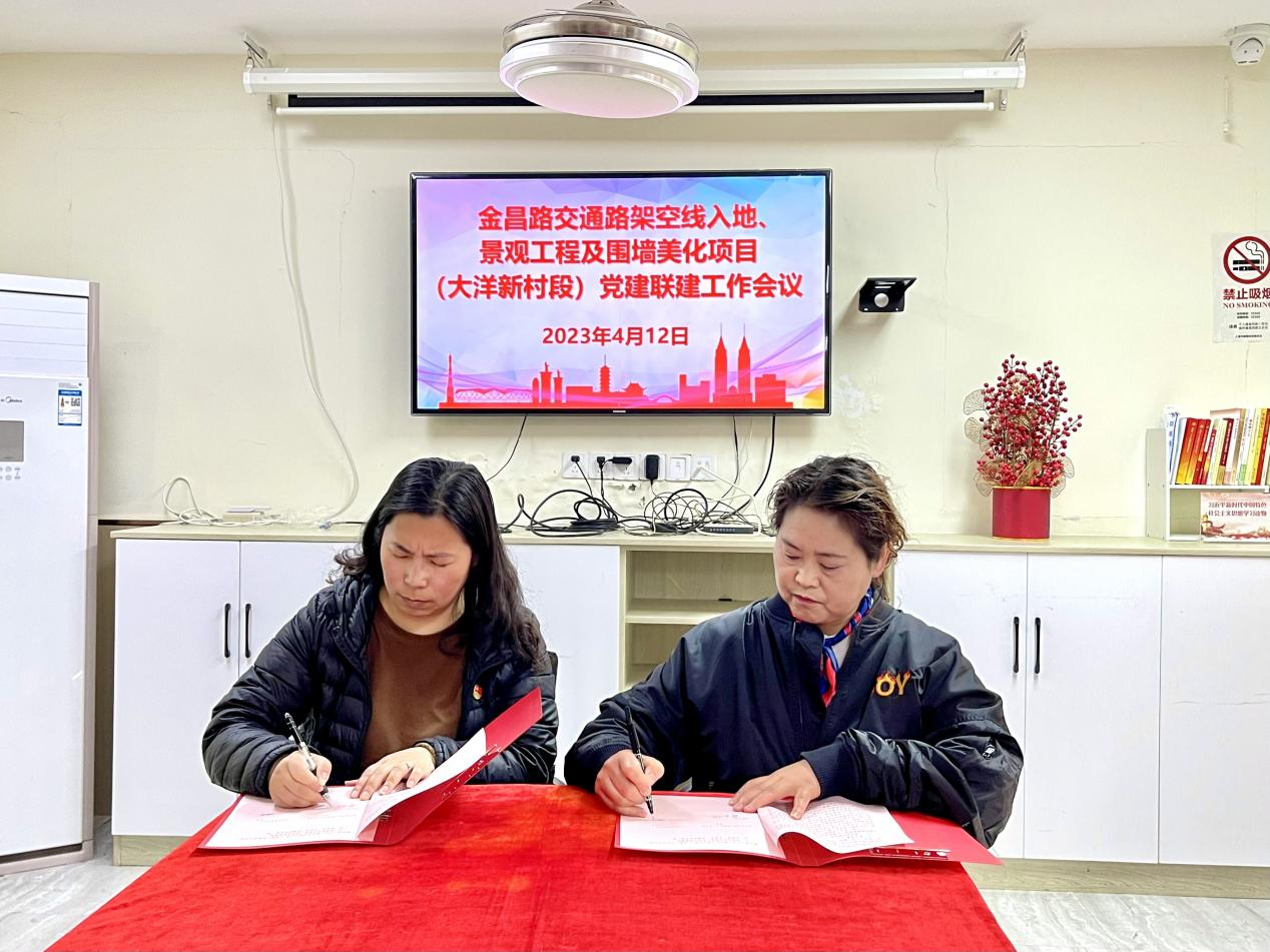 由于彩钢板围挡墙体单薄,小区南界限又紧贴繁忙的交通路和大洋桥,存在一定的安全隐患,居民始终迫切希望围墙早日施工,让小区安全与环境都得到提升。2022年,在普陀区市政建设中心(党支部)、宜川路街道以及联络政协委员的共同推动下,大洋新村南围墙工程于2023年春节后正式启动。居民区党总支通过党建联建,与普陀区市政建设中心(党支部)进行了积极有效的沟通,并签订了共建协议,对老旧围墙外立面进行改造,推进小区围墙美化工程。