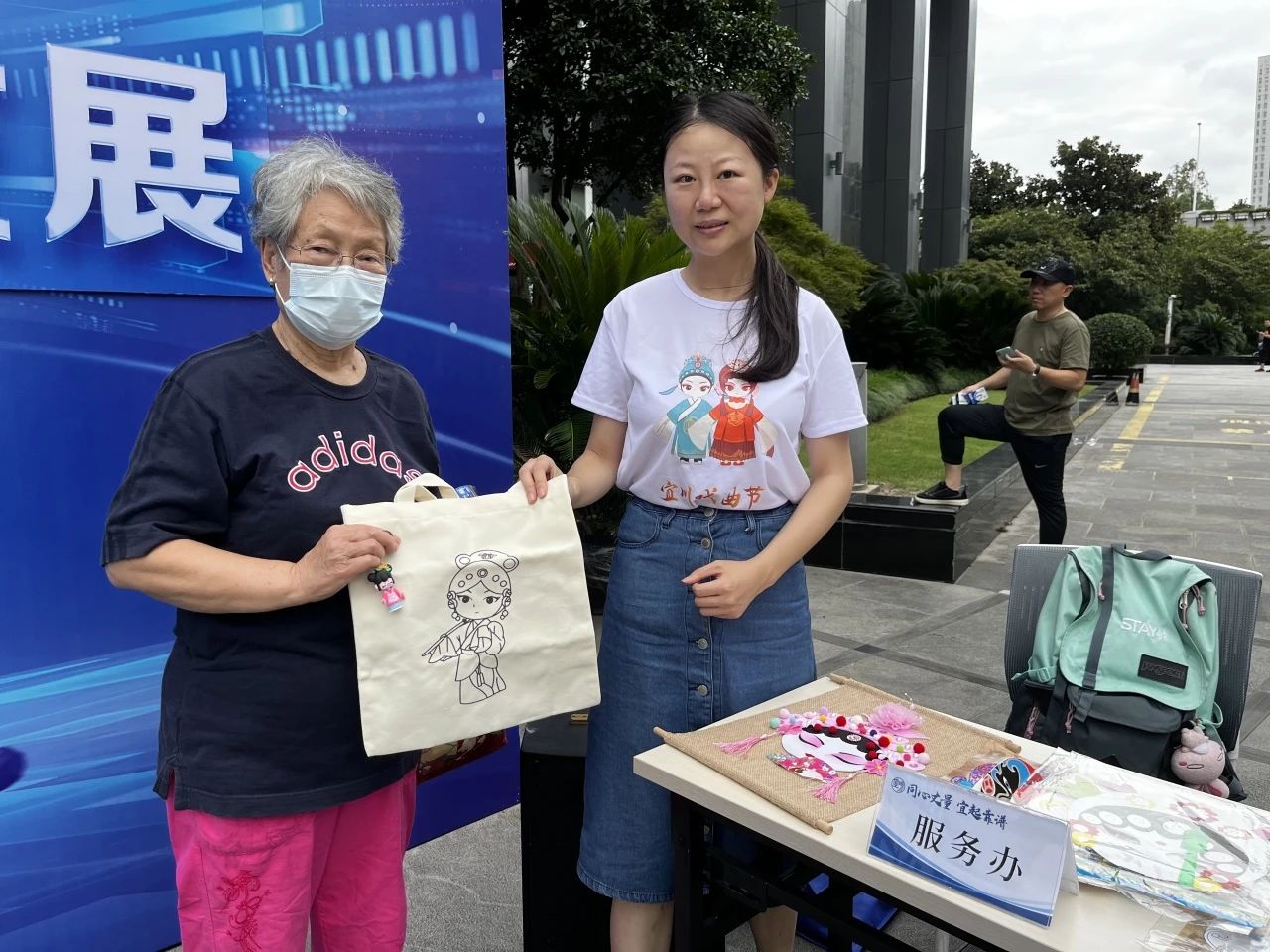 中一国际是宜川路街道的老牌甲级商务楼宇,这里的白领们是普陀区新潮时尚的代名词,为此,宜川路街道和青创公益也紧跟青年们的步伐,创新社区文化工作思路,为白领打造年轻化的国潮时尚体验,萌趣可爱的戏曲兔爷手办,色彩缤纷造型别致的花旦装饰,可以亲自翻阅的戏曲变脸贺卡,还有现场的人气王——迷你戏曲娃娃钥匙扣伴手礼,大家纷纷排队积极领取,还能说出娃娃对应的戏曲人物,如白娘子、嫦娥等,同时现场还安排有戏曲老师献唱沪剧《办喜事》《金丝鸟》等喜庆的戏曲曲目。
