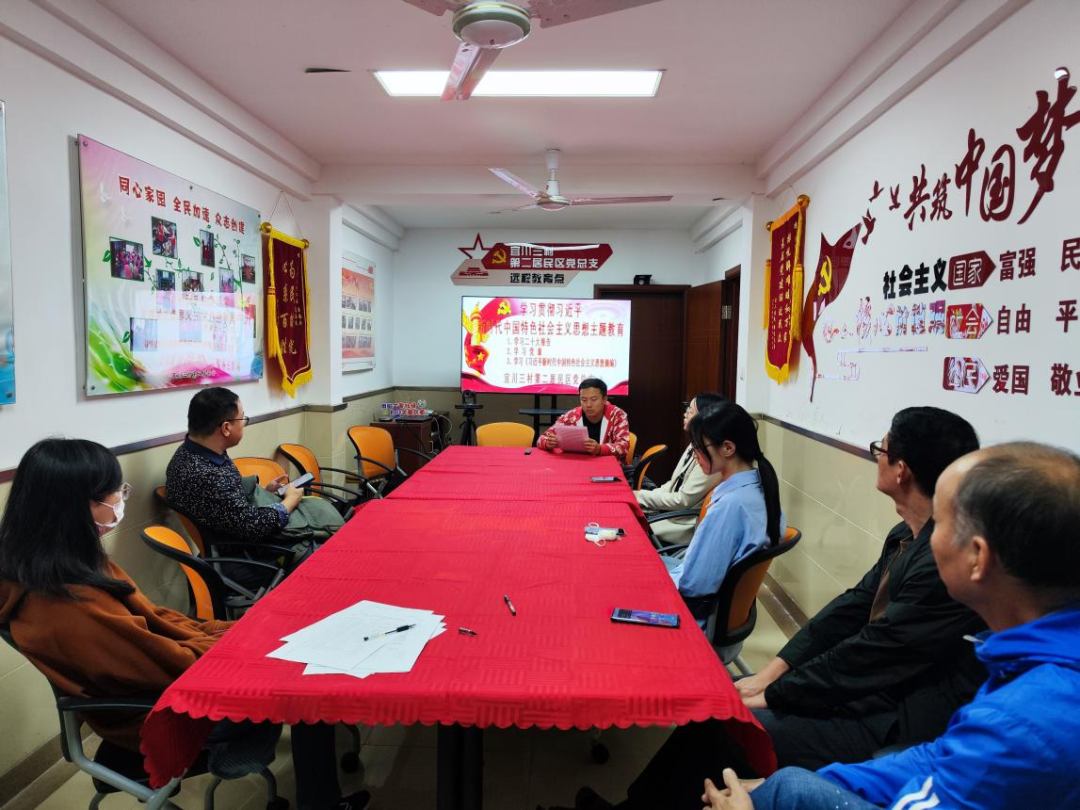 近日,宜川三村第二居民区党总支组织开展了学习贯彻习近平新时代中国特色社会主义思想主题教育专题党课,共计100余名社区党员参加党课学习。