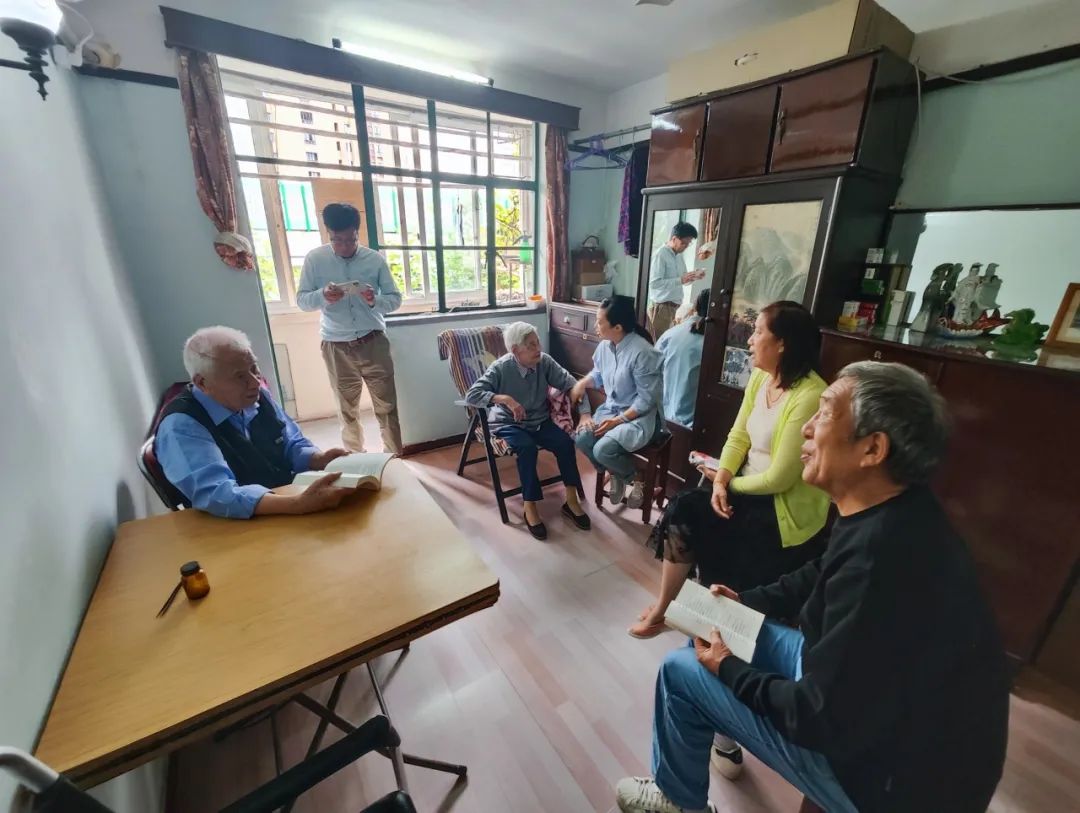 居民区党总支还积极组织各党支部深入高龄、行动不便的社区老党员家中。在居民区党总支书记陈琴的带领下,第四党支部书记和委员一同上门走访了因年迈体弱无法参加组织生活的潘耀炳党员夫妇,为两位老党员送去了学习资料。在关心社区老党员生活状况的同时也向他们宣传党的新思想、新理论、新要求。