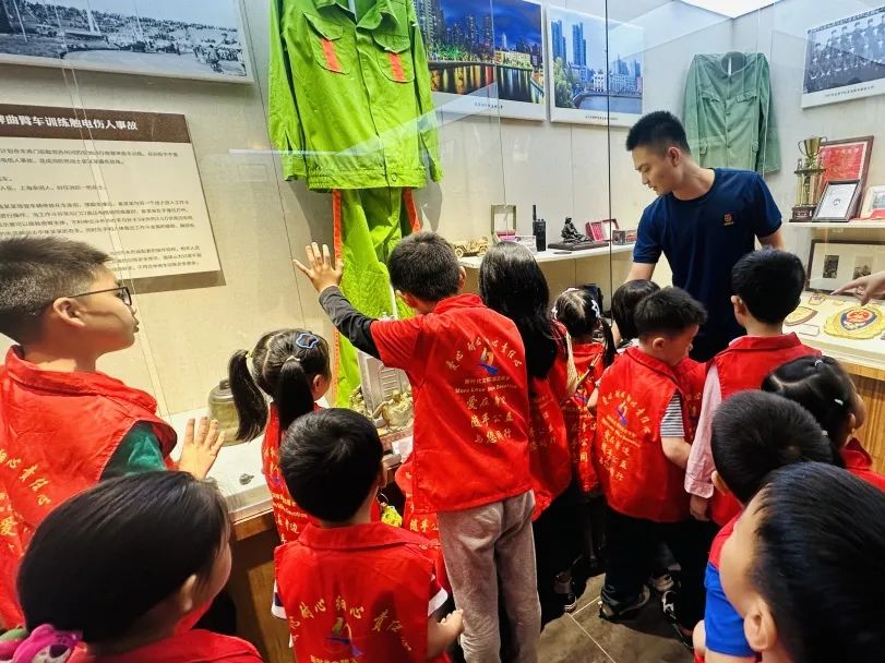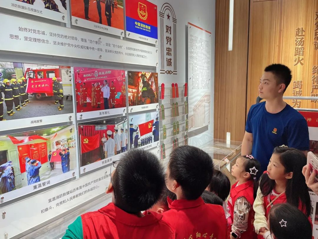 在了解了消防车、体验了水枪后,孩子们跟随消防员叔叔走进了队史馆,开始沉浸式了解消防安全知识“旅途”。