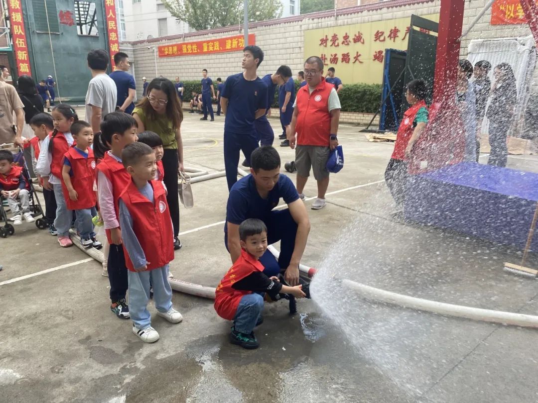 随后,孩子们更是在消防员叔叔的带领下亲身体验了手持水枪、使用水枪的环节。