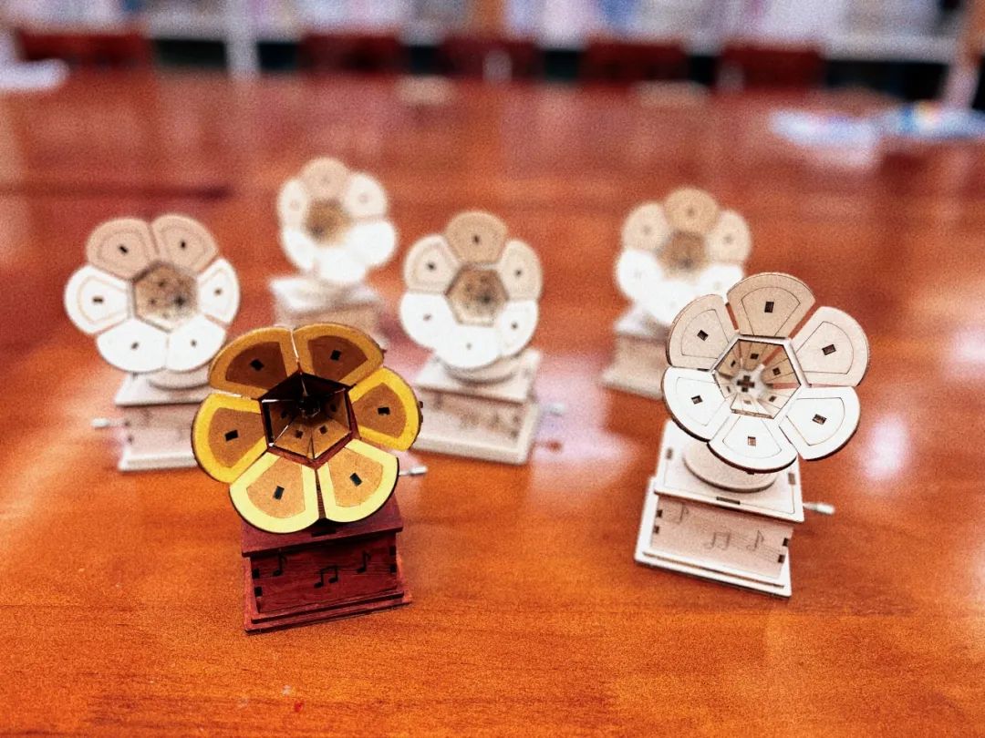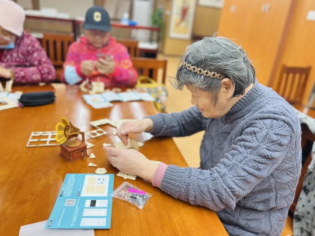 随后,老师带领居民们一起制作一个木质平装版的手摇留声机八音盒。随着八音盒传出的优美音乐在文化中心的教室里回荡,居民们都兴奋地互相展示自己的作品,纷纷留影纪念。