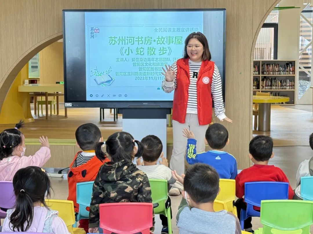 近日,宜川路街道新时代文明实践分中心与宜川一村幼儿园、“爱在身边”志愿团队共同在普陀区图书馆举办了生动有趣的绘本故事活动——《小蛇散步》。在这个充满活力和趣味的故事中,宜川“萌娃”与可爱的小蛇一起度过了愉快的时光。