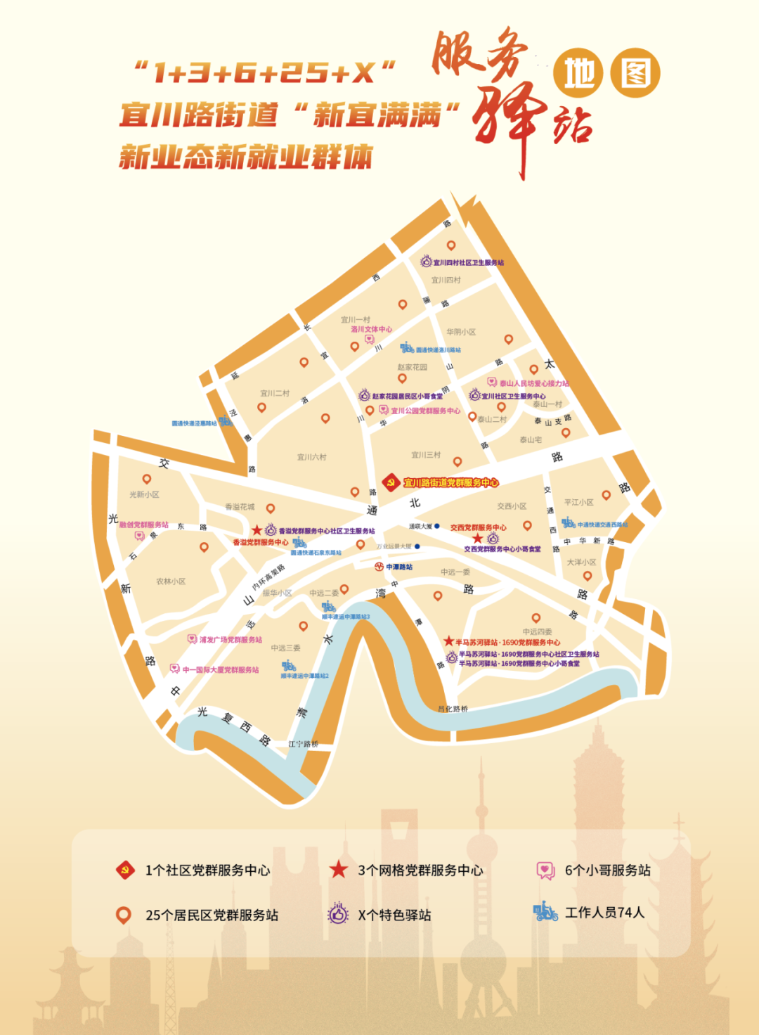 宜川持续深化“宜心向党·丈量学堂”新时代党员教育品牌,在1690党群服务中心分层分类制定市、区、街镇三级共计100门培训课程,供新兴领域党组织点单式学习,随到随学。发布“新宜满满”服务驿站地图2.0版,梳理党建、城建、发展、法治、共治等五方面故事,形成7条“行走的党课”路线,实现“五张清单”效能,打造“家门口”的教育课堂。