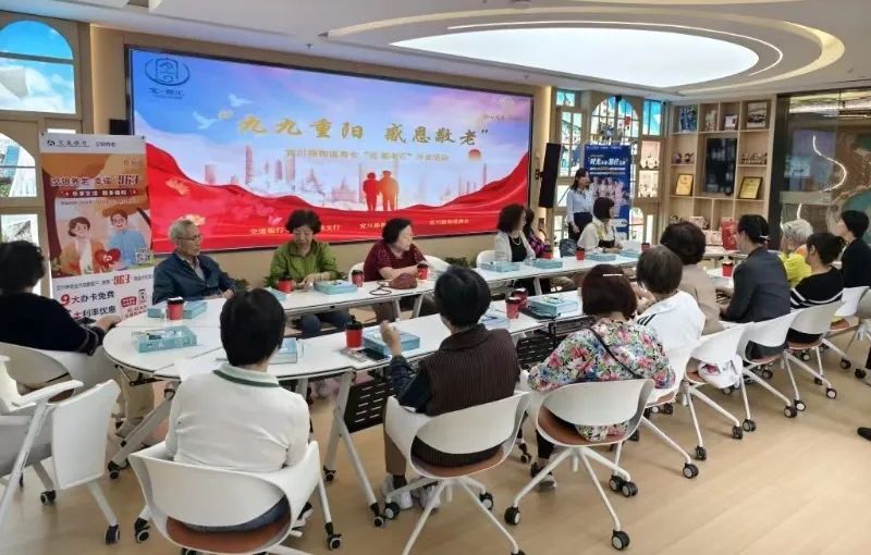 除了歌舞表演之外,宜川路街道商会还联手党群办、商会会员单位交通银行中远两湾城支行共同举办重阳节敬老沙龙活动。