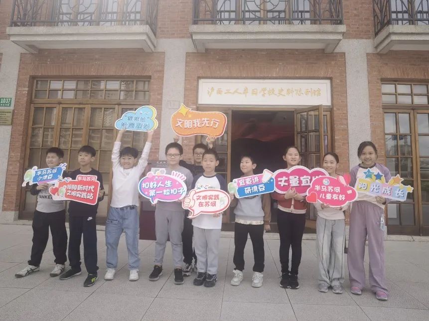 研学第二站,“小学者”们来到了沪西工人半日学校,这是一座集收集、研究、展示、教育、旅游为一体的多功能专业红色文化场馆。