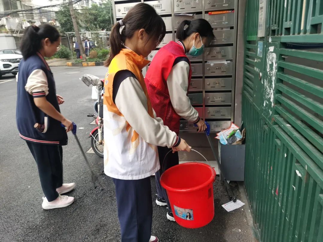 上海市宜川中学学子分别在泰山二村居民区、赵家花园居民区、华阴居民区、宜川三村第二居民区、泰山一村居民区等9个社区参与文明实践活动与志愿服务项目,围绕“我为群众办实事”,参与社区环境治理、楼道整治、环境美化、劝导不文明行为、张贴文明宣讲海报,协助开展便民服务,积极深入社区基础建设,融入治理肌理,为开展社区调查研究挖掘、储备素材。