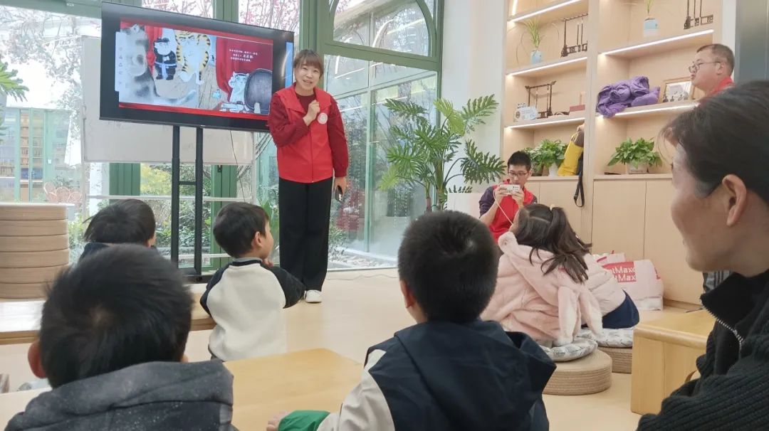 活动现场,青年志愿者老师为大家带来了绘本故事《京剧猫·武松打虎》,“京剧猫”系列由《武松打虎》和《长坂坡》两册组成,《武松打虎》的故事通过描述了“武松猫”打虎的精彩片段,以中国传统京剧剧目为背景,展示了活灵活现的“武松”形象,故事情境妙趣横生,绘本故事让“万物有情”,孩子在阅读绘本的同时,感受着传统戏曲文化的魅力。