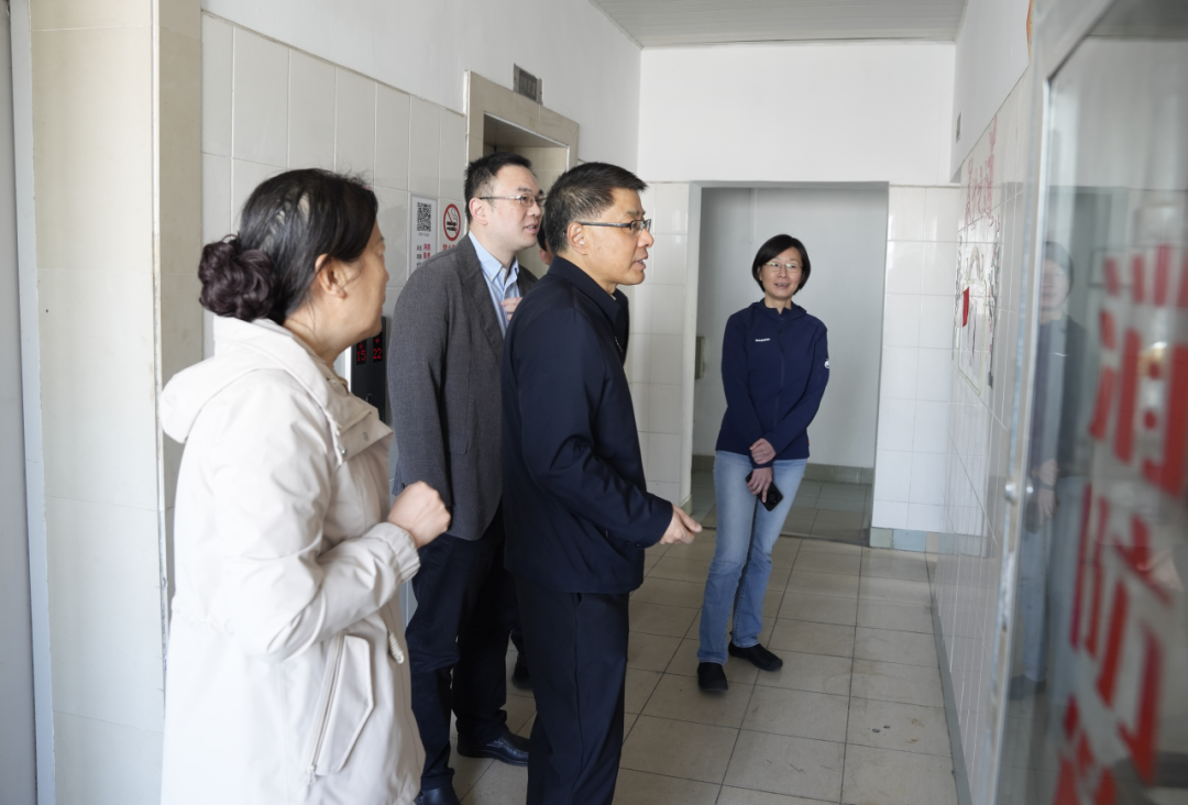 会前,胡广杰前往华经大厦,调研旧房改造、城市更新等工作。