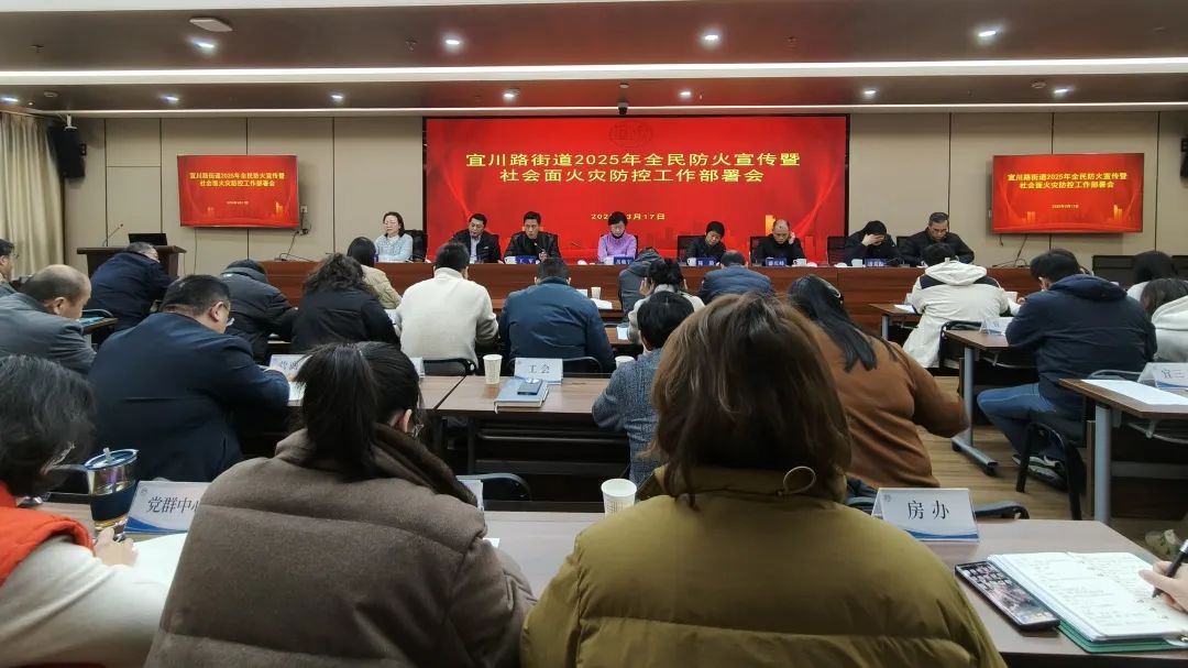 日前,宜川路街道召开2025年全民防火宣传暨社会面火灾防控工作部署会,街道领导班子、全体机关公务员、各大中心、各派出机构负责人,居民区书记、主任参加。