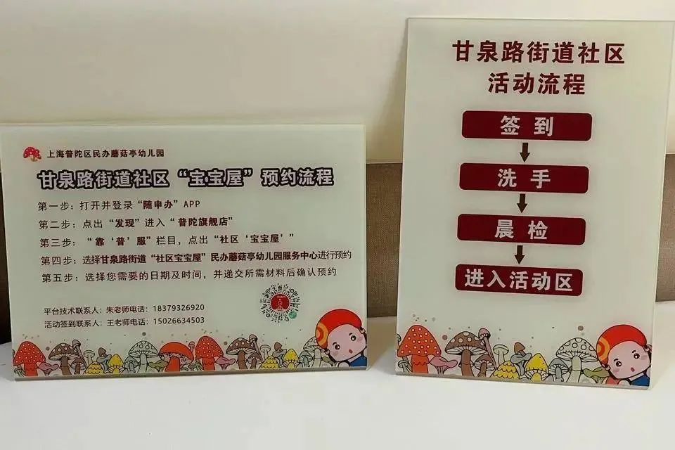 现在,适龄婴幼儿家长只需通过“随申办”APP,搜索“普陀旗舰店”,在“靠普服”栏目点击“社区宝宝屋”,选择“甘泉路街道社区‘宝宝屋’民办蘑菇亭幼儿园服务中心”并遵循提示操作,即可轻松预约申请一年12次(每次2小时)的“宝宝屋”免费公益托育服务,满足家庭对托育服务的多元需求。