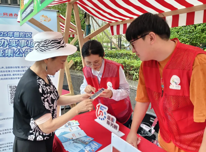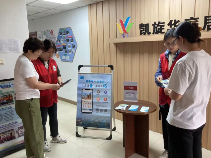 “一网通办”进园区。向企业与求职者宣传“一网通办”成效,推广“随申办”APP、“随申办”支付宝、微信小程序等渠道,足不出户线上办理业务,针对居民和企业员工咨询的就医记录册换发、养老金领取、医保卡申领、城乡居保参保、就业创业等相关问题给予耐心解答。