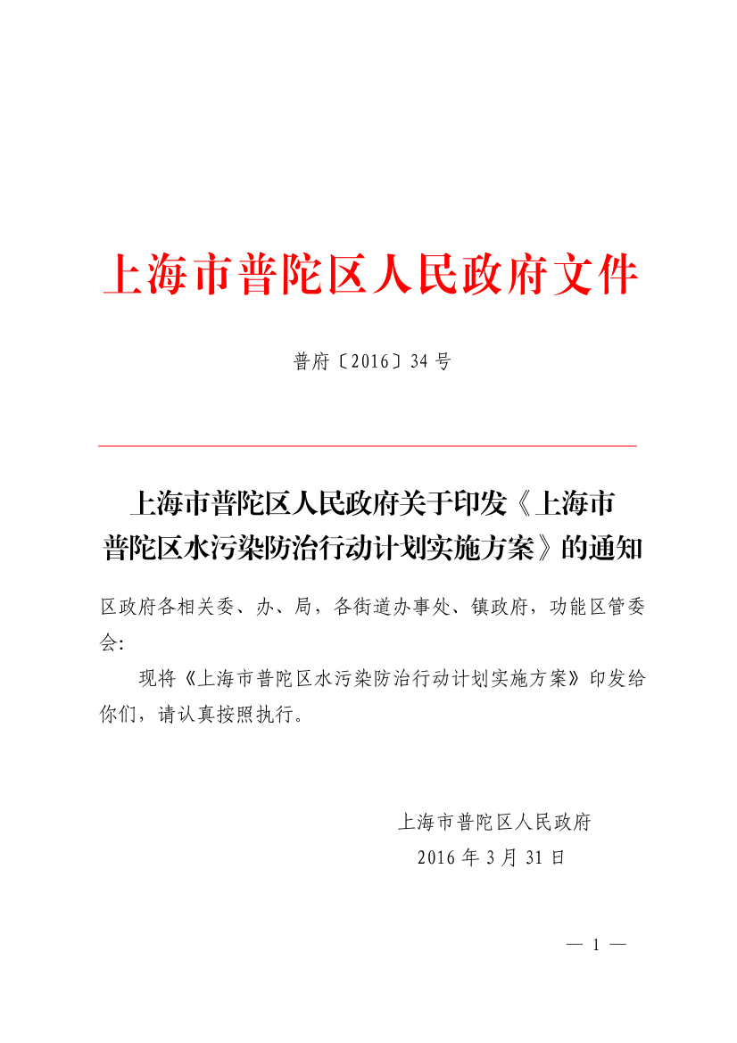 关于印发《上海市普陀区水污染防治行动计划实施方案》的通知