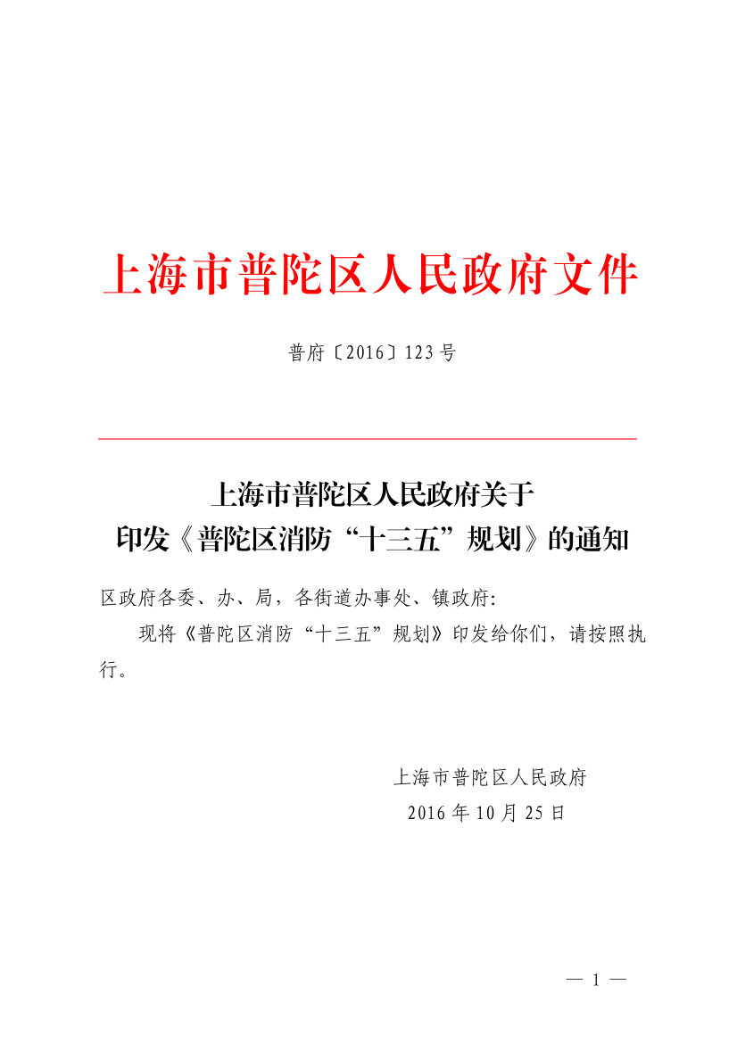 现将《普陀区消防“十三五”规划》印发给你们,请按照执行。