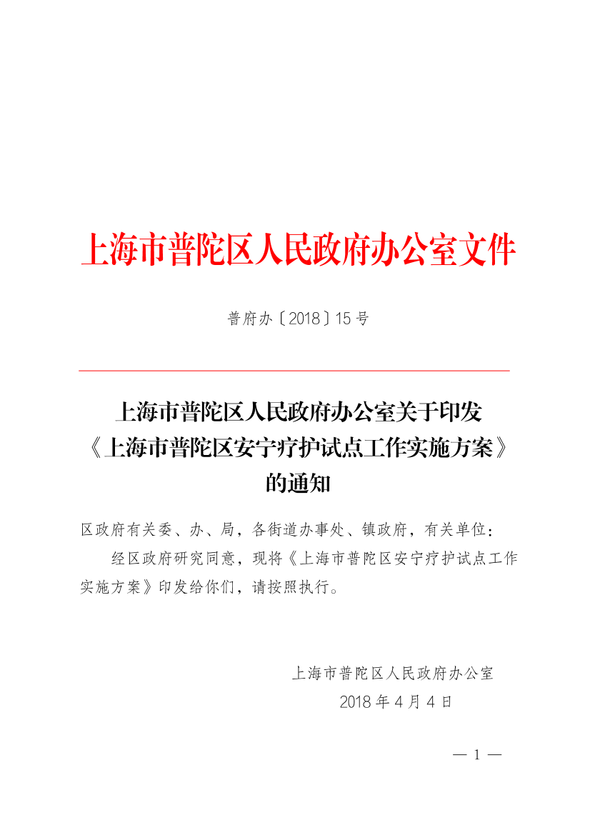 上海市普陀区人民政府办公室关于印发《上海市普陀区安宁疗护试点工作实施方案》的通知
