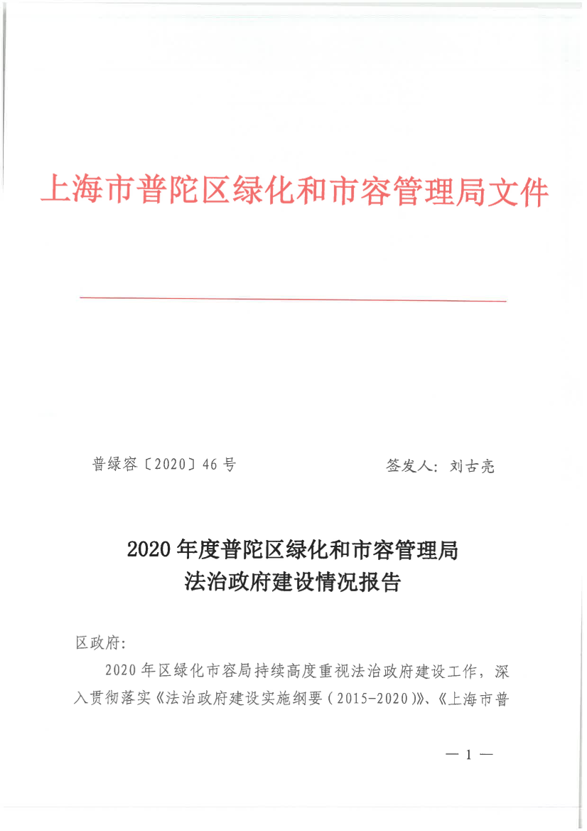 2020年度普陀区绿化和市容管理局法治政府建设情况报告