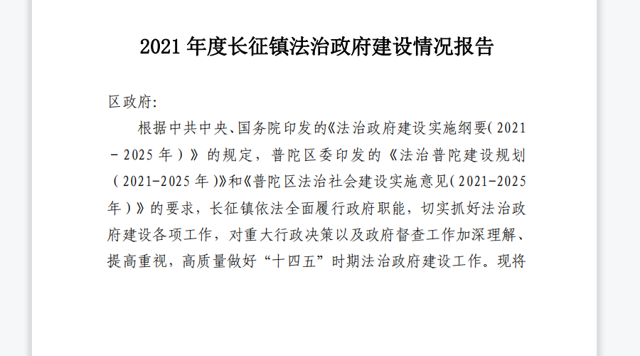 2021年度长征镇法治政府建设情况报告