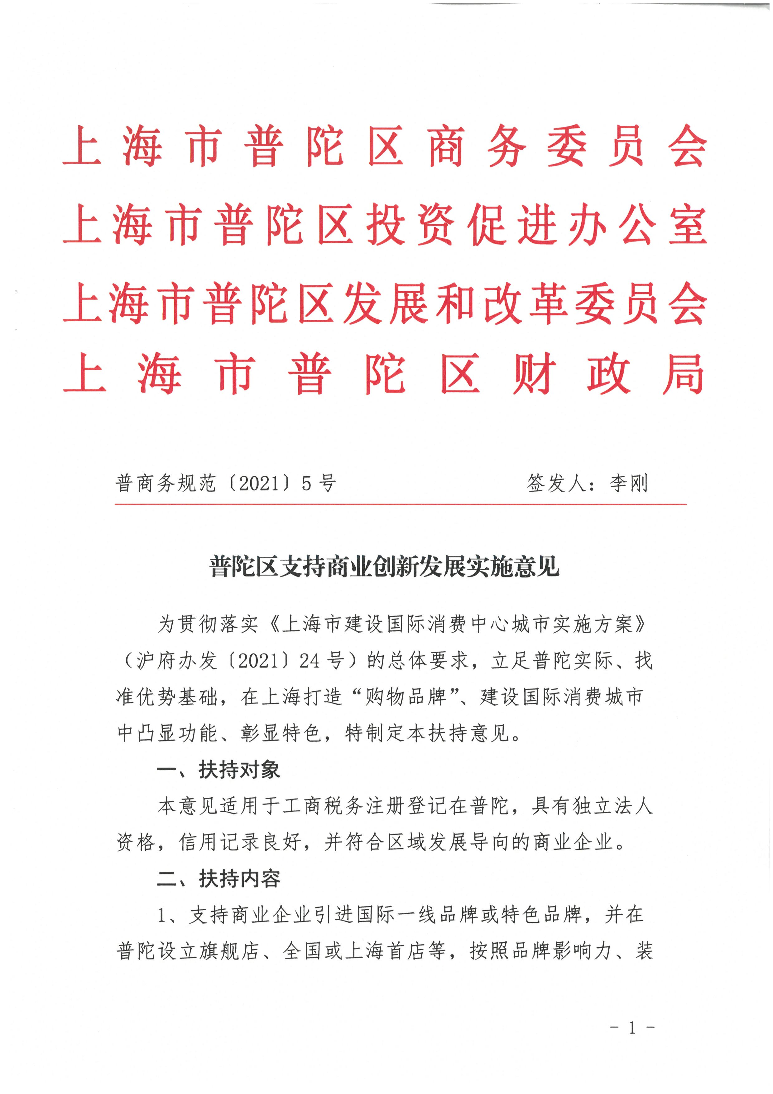 为贯彻落实《上海市建设国际消费中心城市实施方案》(沪府办发〔2021〕24号)的总体要求,立足普陀实际、找准优势基础,在上海打造“购物品牌”、建设国际消费城市中凸显功能、彰显特色,特制定本扶持意见。
