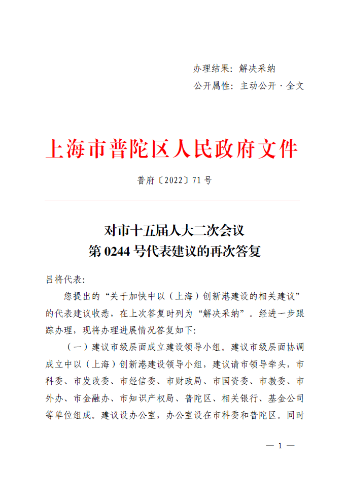 您提出的“关于加快中以(上海)创新港建设的相关建议”的代表建议收悉,在上次答复时列为“解决采纳”。经进一步跟踪办理,现将办理进展情况答复如下: