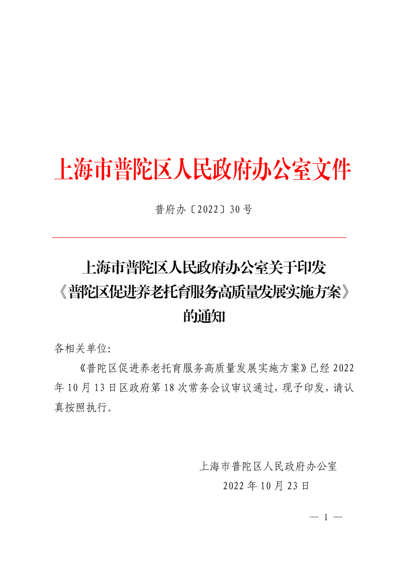 上海市普陀区人民政府办公室关于印发《普陀区促进养老托育服务高质量发展实施方案》的通知