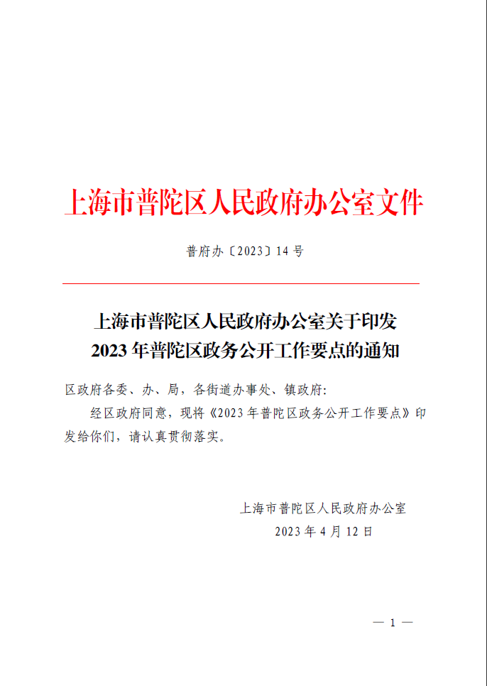 上海市普陀区人民政府办公室关于印发2023年普陀区政务公开工作要点的通知