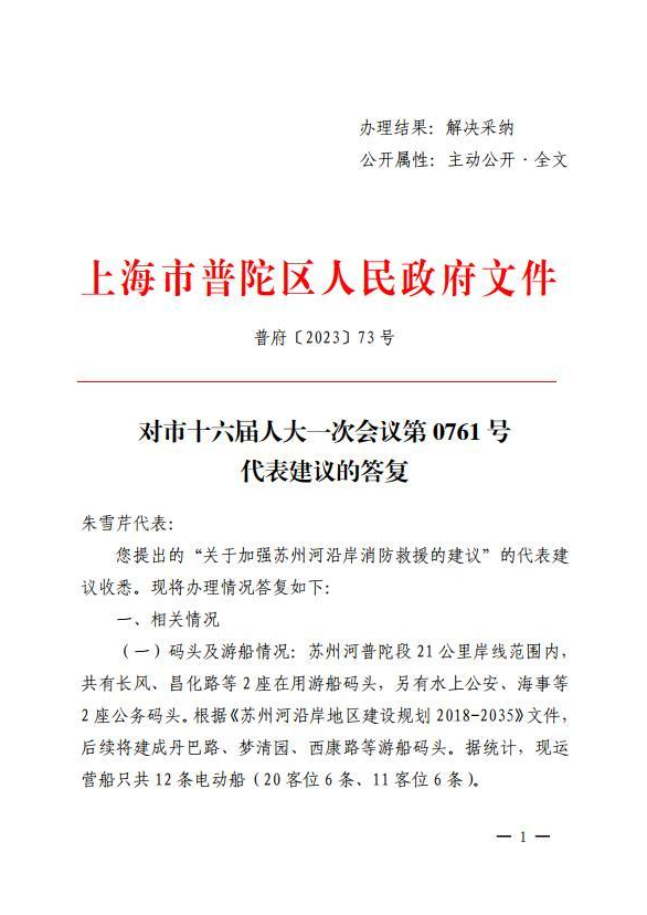 您提出的“关于加强苏州河沿岸消防救援的建议”的代表建议收悉。现将办理情况答复如下: