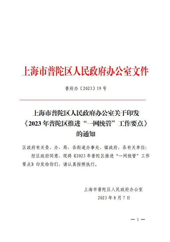 上海市普陀区人民政府办公室关于印发《2023年普陀区推进“一网统管”工作要点》的通知