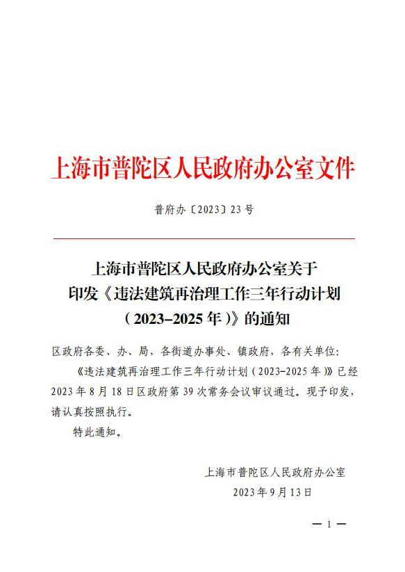 上海市普陀区人民政府办公室关于印发《违法建筑再治理工作三年行动计划(2023-2025年)》的通知