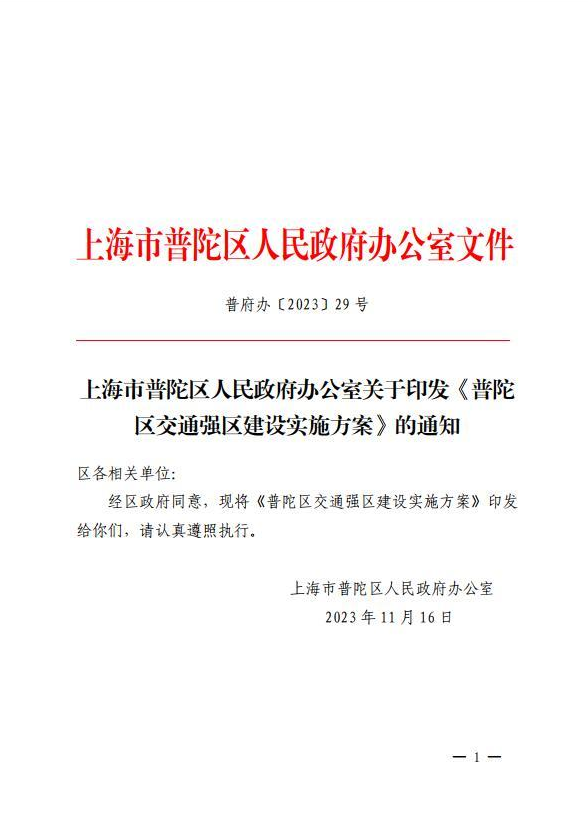 上海市普陀区人民政府办公室关于印发《普陀区交通强区建设实施方案》的通知