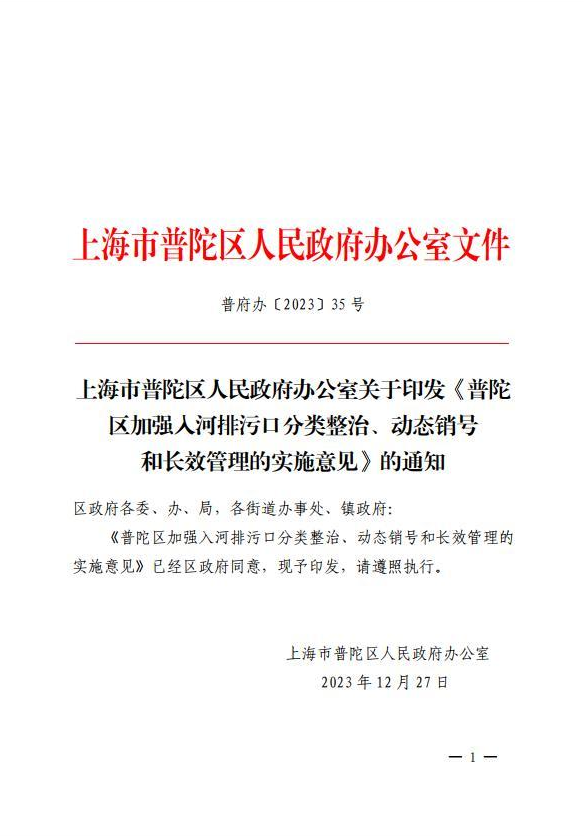 普陀区加强入河排污口分类整治、动态销号和长效管理的实施意见