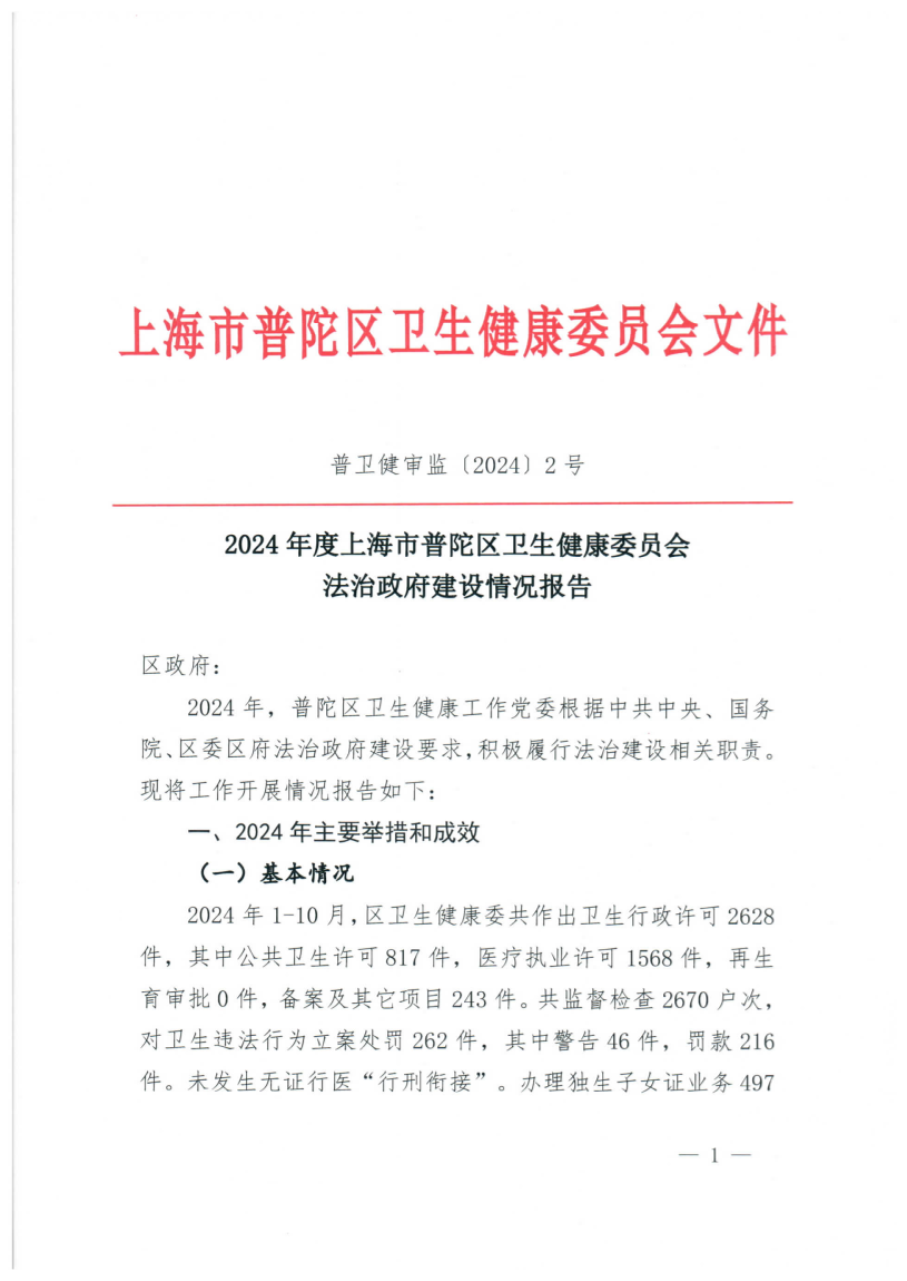 2024年度上海市普陀区卫生健康委员会法治政府建设情况报告