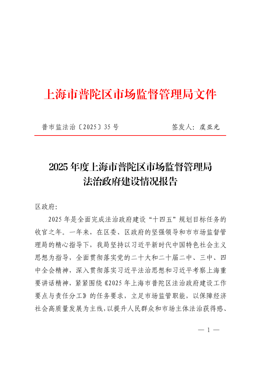 2025年度上海市普陀区市场监督管理局法治政府建设情况报告
