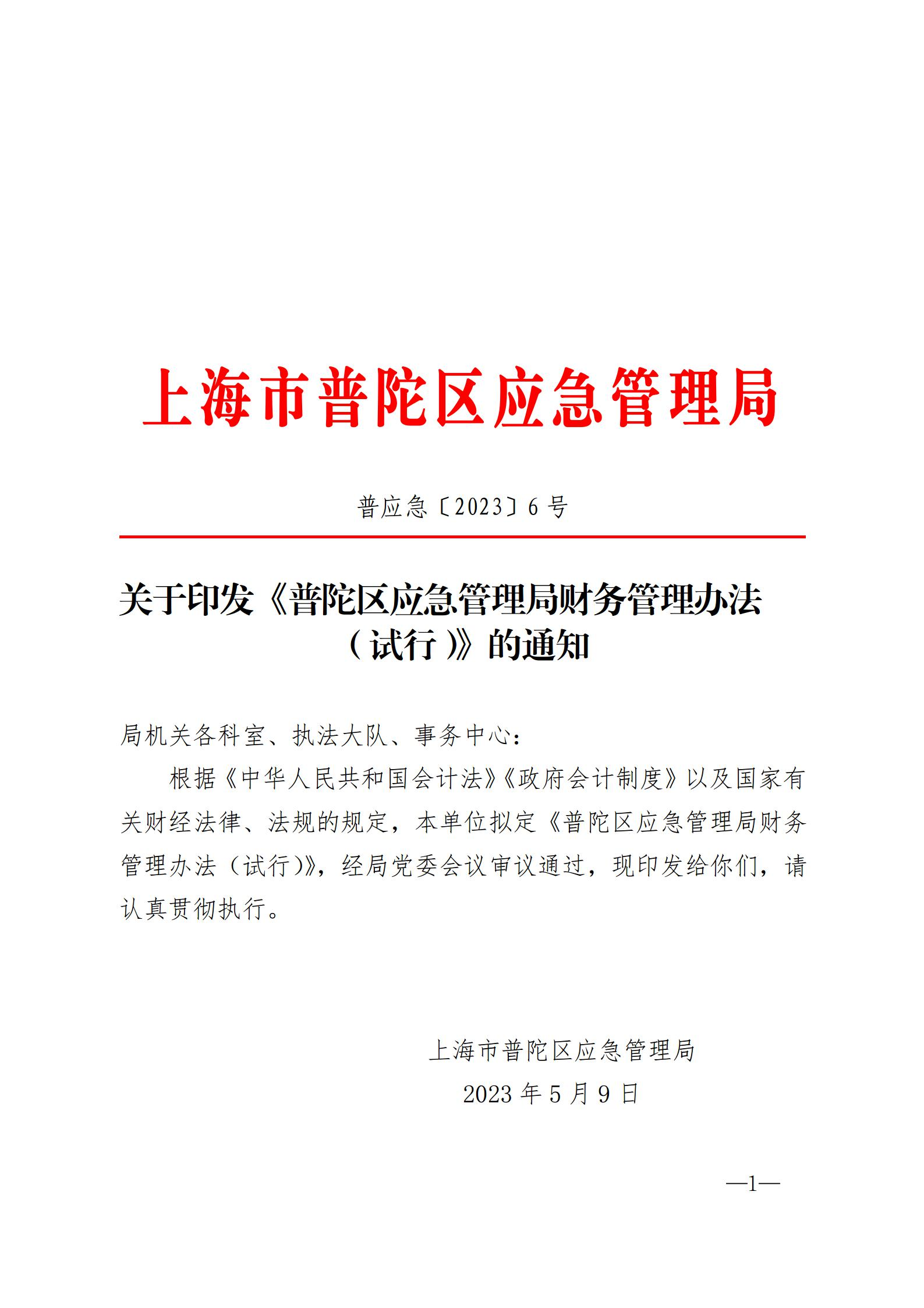 关于印发《普陀区应急管理局财务管理办法(试行)》的通知