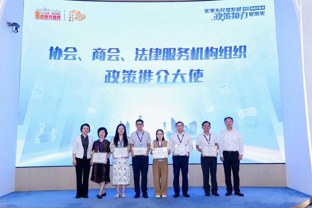 活动还为长征镇天地软件园党委副书记李欣等 12名来自协会、商会、法律服务机构、楼宇园区、居村委的代表颁发了政策推介大使证书。