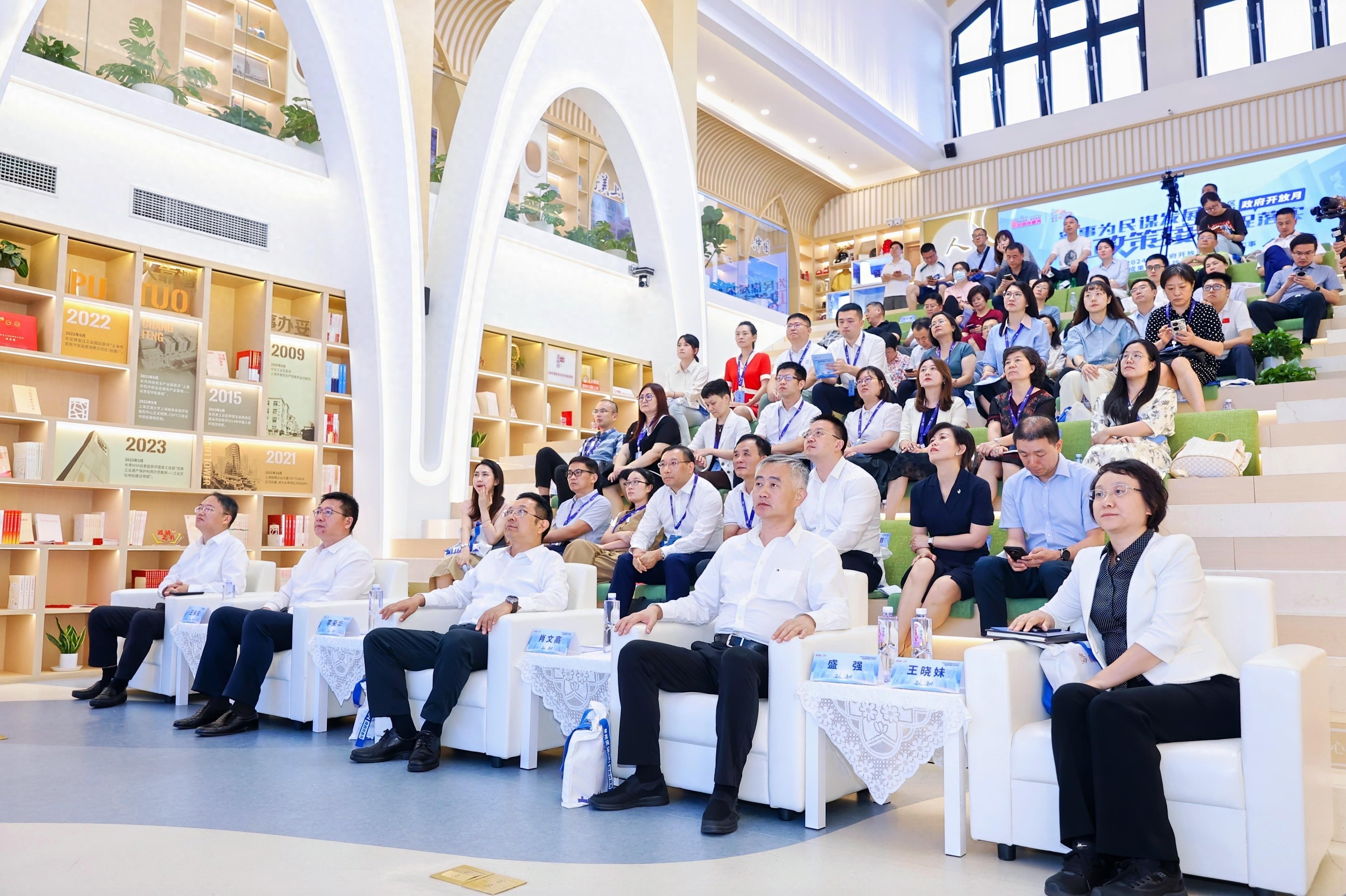 活动现场气氛热烈,区民政局、区文旅局、长风新村街道的代表分别就社区长者食堂、儿童友好城市阅读新空间、15分钟就业服务示范圈等实事项目进行了详细的发言和交流,充分展示了普陀区在“养老为老”“幼有所育”“家门口服务”三个方面所取得的显著成效和创新做法。