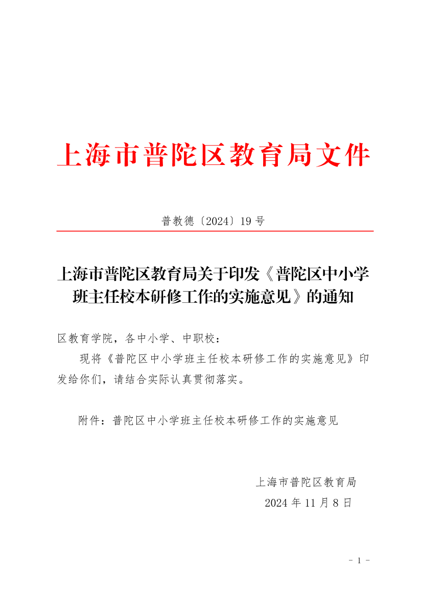 关于印发《普陀区中小学班主任校本研修工作的实施意见》的通知
