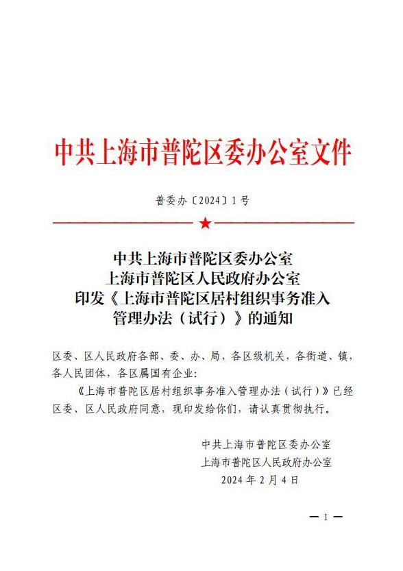 《上海市普陀区居村组织事务准入管理办法(试行)》