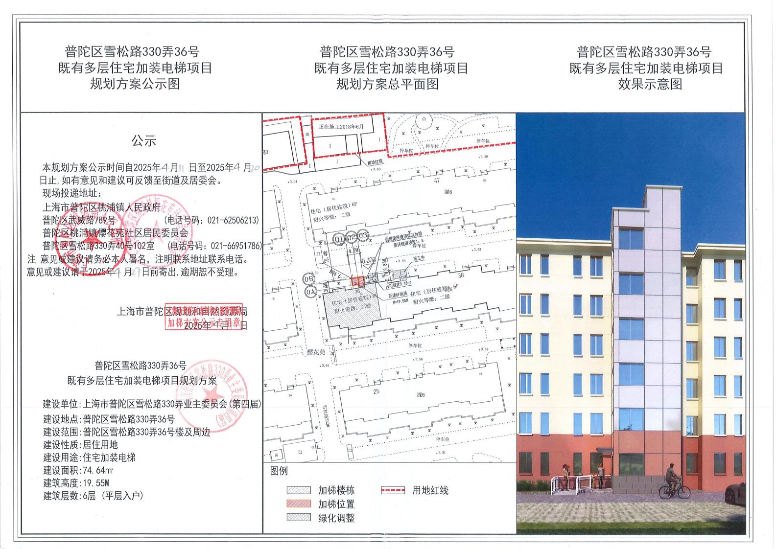 普陀区雪松路330弄36号既有多层住宅加装电梯项目规划方案公示