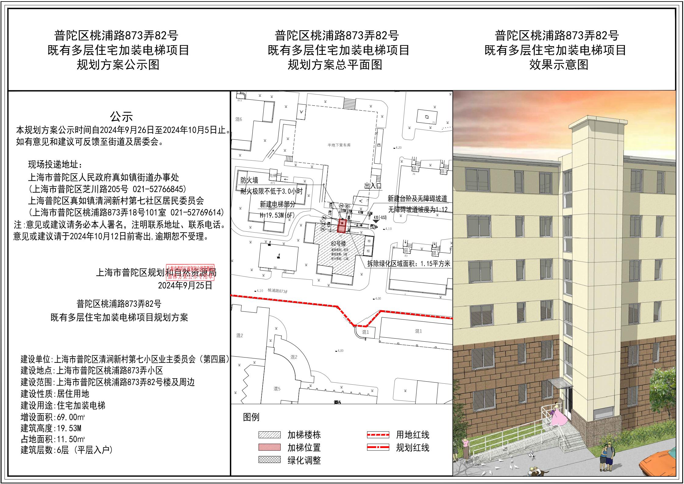 普陀区桃浦路873弄82号既有多层住宅加装电梯项目规划方案公示