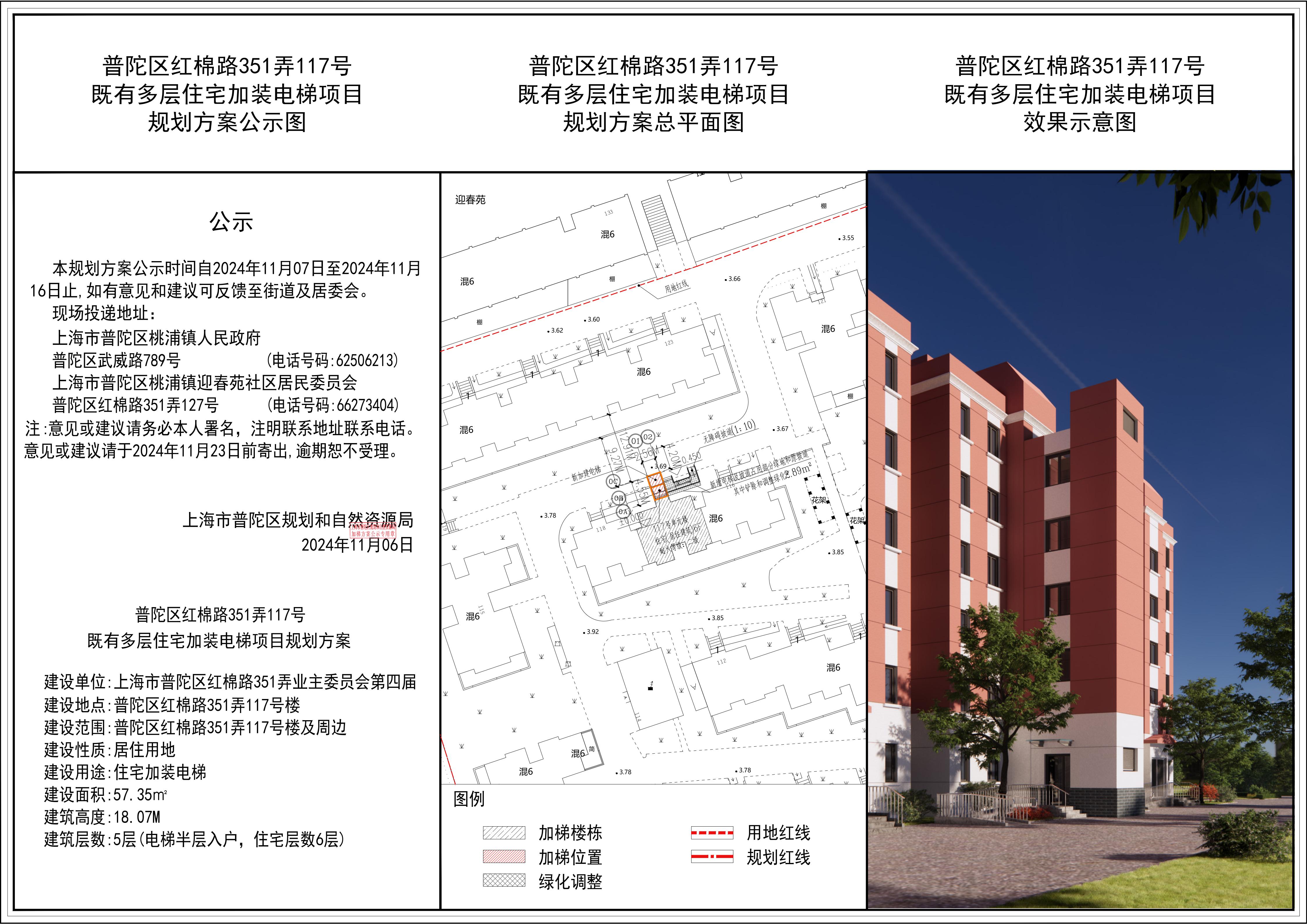 普陀区红棉路351弄117号既有多层住宅加装电梯项目规划方案公示