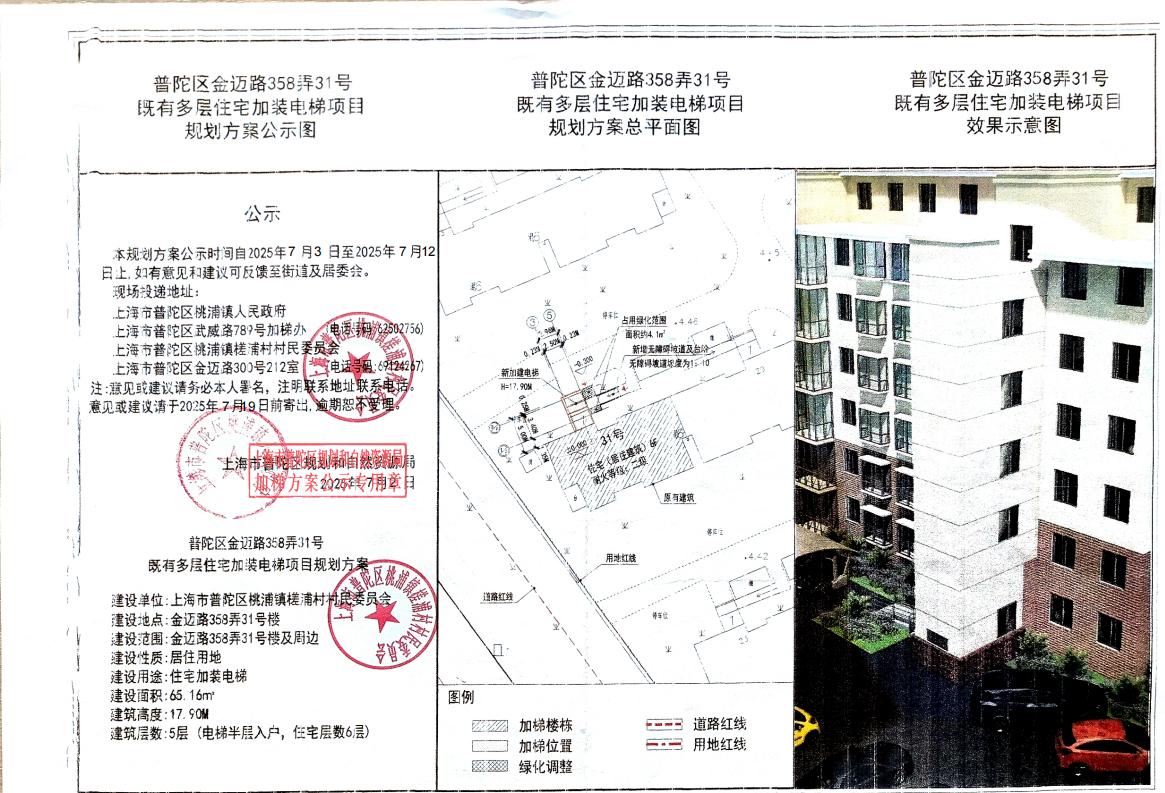 普陀区金迈路358弄31号既有多层住宅加装电梯项目规划方案公示