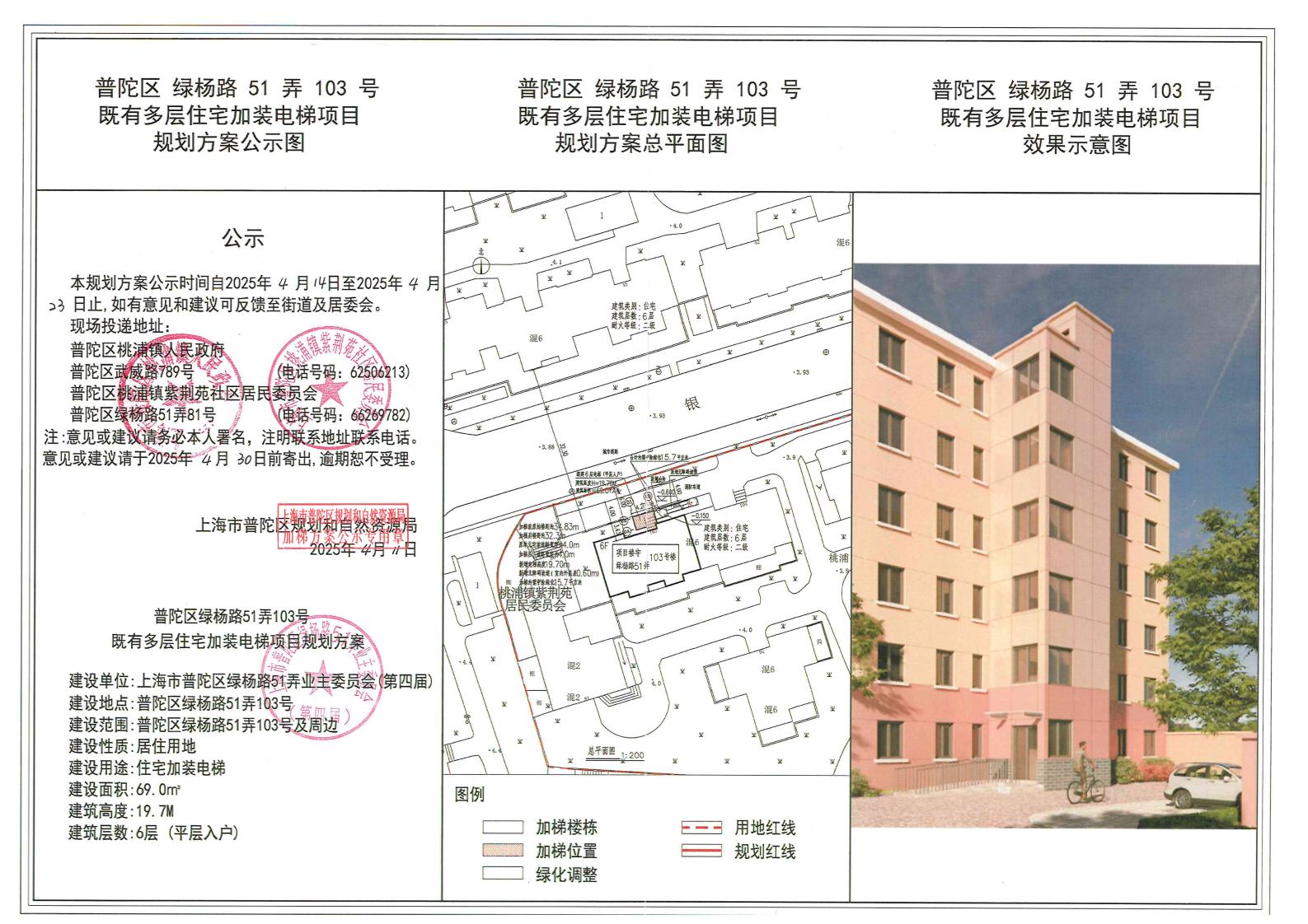 普陀区绿杨路51弄103号既有多层住宅加装电梯项目规划方案公示