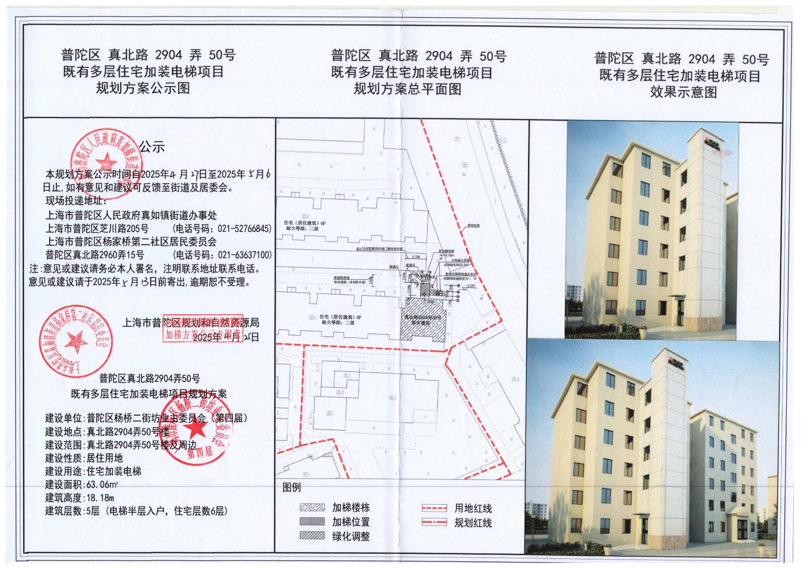 普陀区真北路2904弄50号既有多层住宅加装电梯项目规划方案公示